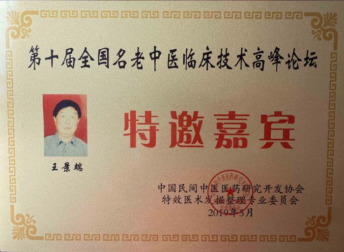 王景端被邀参加“第十届全国名老中医临床技术高峰论坛”